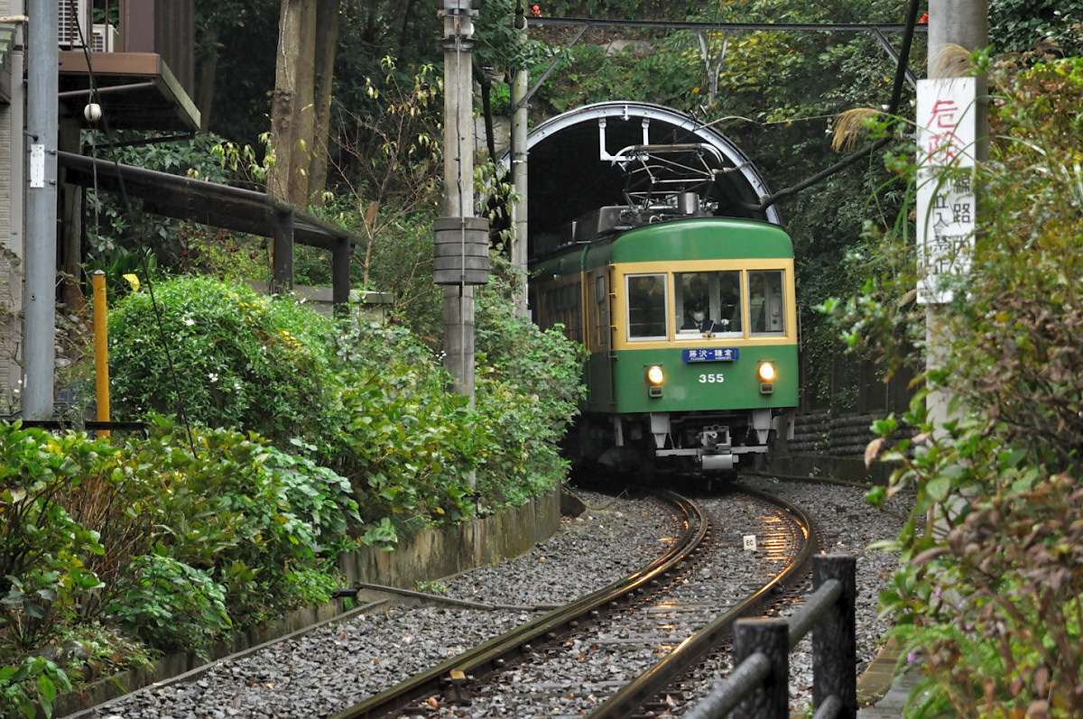 稲村ヶ崎駅あたりまで、民家の中を走ります。(?_?)