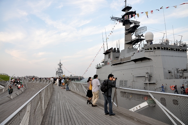 8日の観艦式に参加する為に、前泊しました。横浜港に1時頃到着して、一般公開されている護衛艦を見物しに行きました。