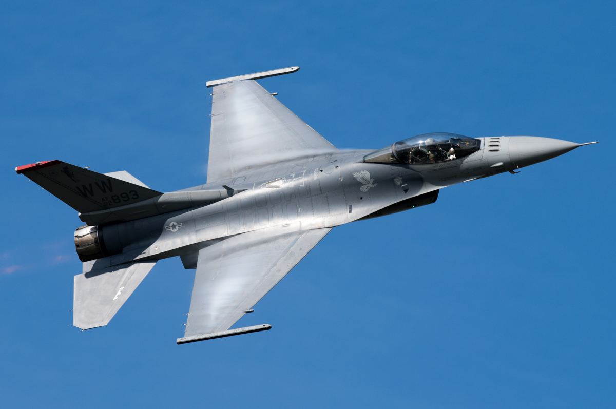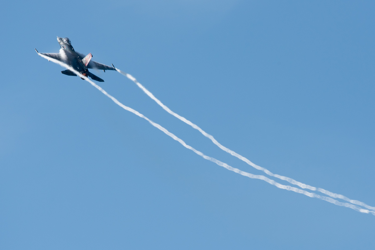最初にアメリカ空軍のF16の機動飛行が始まりました。