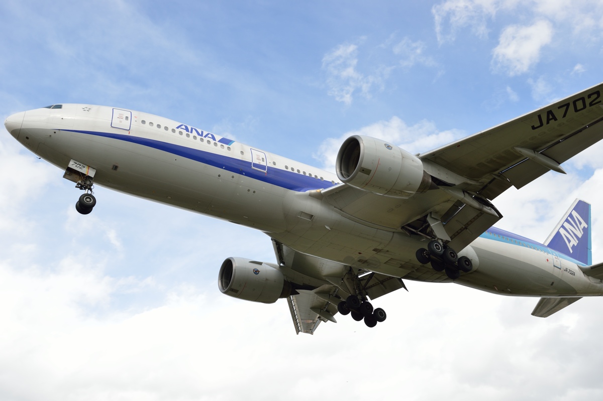 飛行機は着陸態勢で、スピードを飛行機なりに落として飛んできますが、上空を通過するときは速いスピードに感じるので、フレームに納めるのに苦労しました。