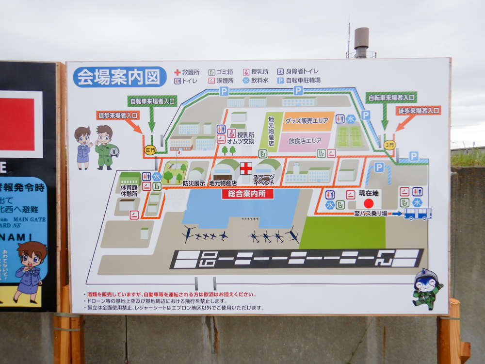 基地の臨時バス停から歩いて会場まで行きました。